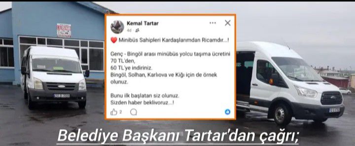 “Genç–Bingöl arası minibüs ücretini 70 TL'den 60 TL'ye indiriniz. Bingöl, Solhan, Karlıova ve Kiğı için de örnek olunuz. Bunu ilk başlatan siz olunuz.”