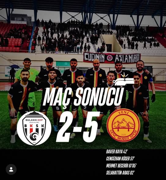 Genç Muratspor, Bölgesel Amatör Lig'de kalma yolunda en kritik virajlardan birini farklı geçti. Bulanık Kopspor karşısında sahaya mutlak galibiyet parolasıyla çıkan temsilcimiz, baştan sona üstün götürdüğü mücadeleyi 5-2 kazanarak ligde kalma umutlarını son haftaya taşıdı.
